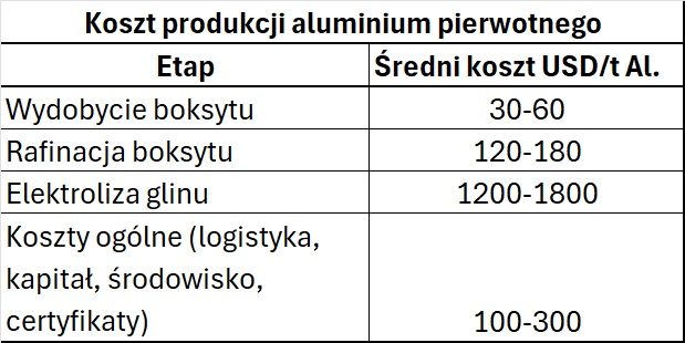 Co do możliwego spadku cen aluminium pierwotnego na LME – jest jeszcze przestrzeń do obniżek. W zależności od źródła energii i regionu produkcji, koszt wytworzenia 1 tony aluminium waha się między 1450 USD a 2300 USD. Dla porównania – cena gąski pierwotnej w Rotterdamie po doliczeniu premii i cła przekracza obecnie 2800 EUR/t.